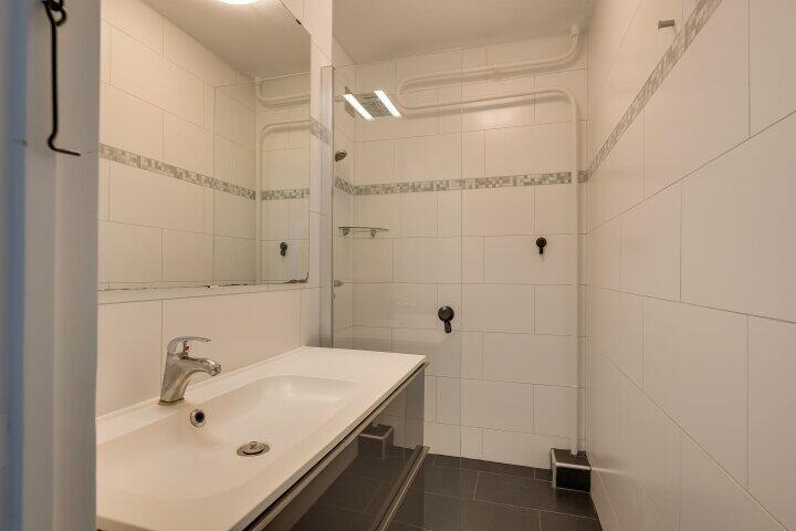 Upon entering the apartment, you are welcomed into a spacious hallway with the meter cupboard. From here, you have access to the bright living and dining area, where you can fully enjoy the space and natural light. At the front of the apartment is a wide balcony that stretches across the entire width of the apartment and is ideally situated facing the sunny Southwest.